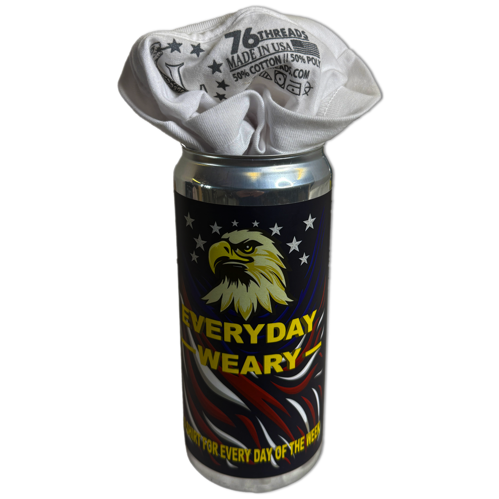 We know we’re different. When we first came up with the idea of shipping shirts in a can, we weren’t sure it could even be done. We spent countless hours figuring out how to make it work—and, most importantly, how to make it safe for our customers. Our cans are designed to fit shirts up to 3XL. We built custom wheels on our canning machine to fold the aluminum precisely, ensuring safety and allowing the top to fit securely. Every shirt comes in a custom, in-house-designed, labeled can. So, whenever we drop a new shirt, you can bet your ass it’ll come in a custom-designed can that you can shoot, sip, or showcase!